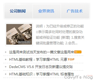 看到圖片就應該很熟悉了,日常做Dedecms模版的時候,首頁肯定會有這樣或那樣的文章標題列表,用{dede:arclist}調用列表出來是件很easy的事情這里就不過多敘述了,不太熟悉的童鞋可以去參考Dedecms官方文檔。這里我主要想說的是有點時候我們想在這個文章標題列表上做點小文章,比如取出的標題是當天發布的內容,則在標題后面加上new圖標;又比如頭條推薦的文章標題后面加上上圖里的top圖標等等,而單純透過{dede:arclist}里面的'flag'屬性是無法單獨判斷的,這就需要我們單獨做點什么了。既然需要判斷,自然而然的會令我們想到用'if',在Dedecms里面如果使用'if'判斷的內容還跟文章有關,那不得不提的就是[field:array]這個東西很強大啊,基本上你想要的東西都在這里面,下面來看代碼,先來兩個熱熱身: 1、循環判斷{dede:arclist}取出的標題是否為頭條