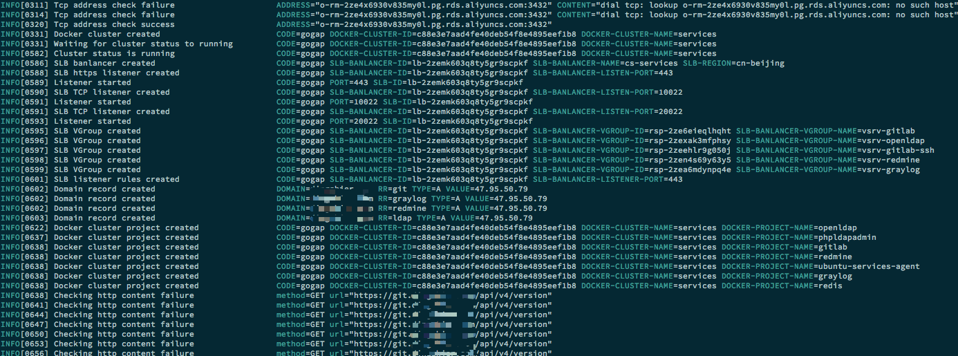 使用go-flow搭建下面這些環境的執行截圖,嗯,我給大家帶來的是全家桶,當然這些是基礎環境,每個公司都會有自己的環境需要搭建,大家可以為 go-flow 貢獻插件哦?