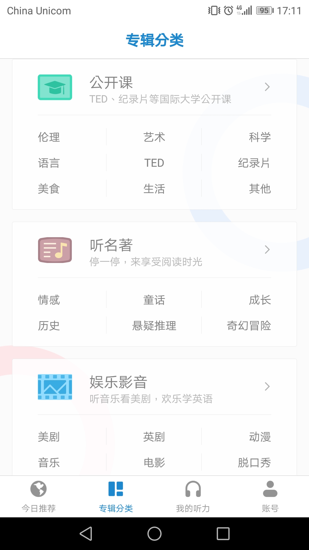 英語趣配音 英語流利說:讀物多是期刊,會有語音講解。語音講解部分比較詳細,拓展部分也比較好。初級的免費內(nèi)容適合小白,好一點的高級課程要付費,用過的人反應(yīng)課程還可以。