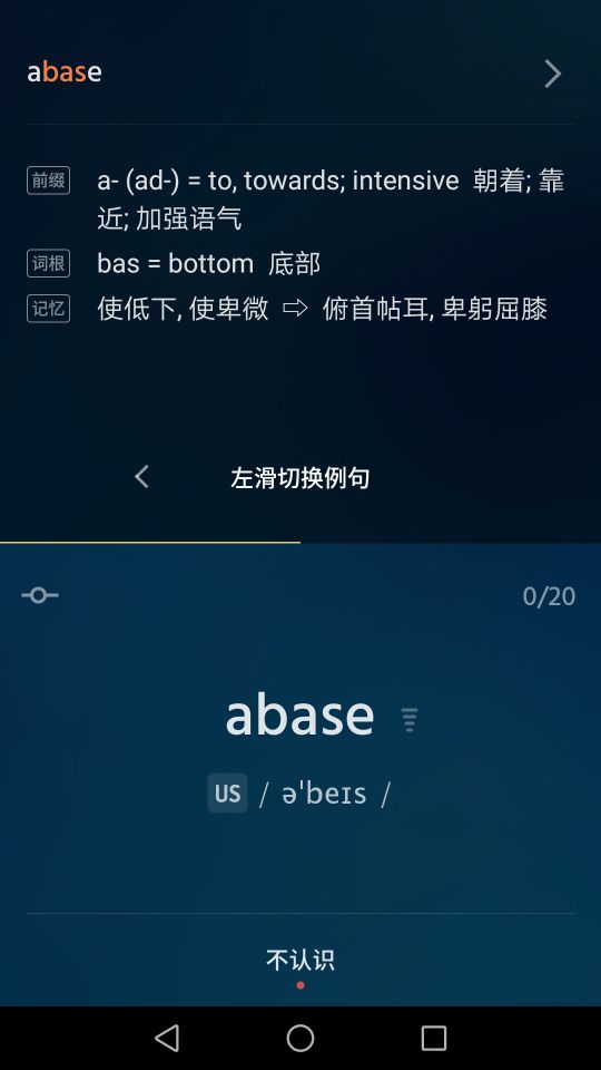 百詞斬 不背單詞:單詞連續(xù)4次選擇“認識”才算完成記憶,否則重新開始累積;有拼寫測試,就是在手機上默寫一遍以便加深記憶;20個單詞為一組進行學(xué)習(xí)和回顧。主流背單詞軟件,沒啥說的。