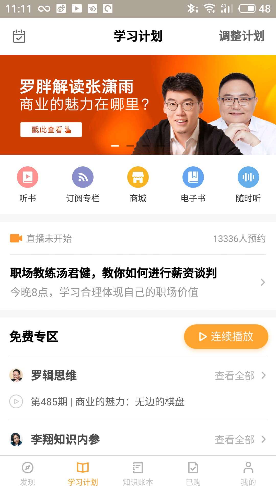 我每天的《個人成長課表》里,得到app是重要的環節。