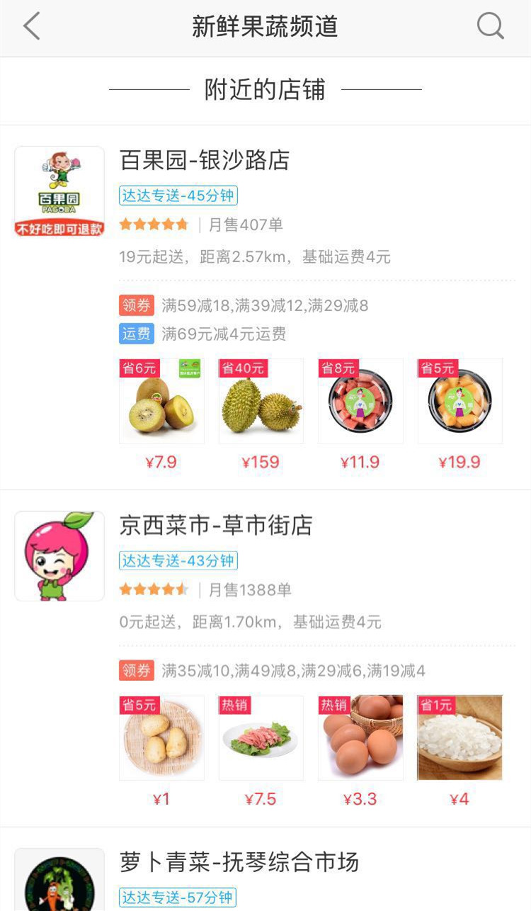 京東到家跟美團很像了,提供平臺,賣家以入駐平臺的形式。店鋪都是附近的果鋪,基本上每家都有店鋪優惠券,可以滿減,另外每家店都會有做秒殺的水果商品,還挺劃算的!京東到家就像外賣一樣,會有京東人員送貨到家,速度在1小時內,雖然要花費幾塊錢的外賣費,但真的很省心!