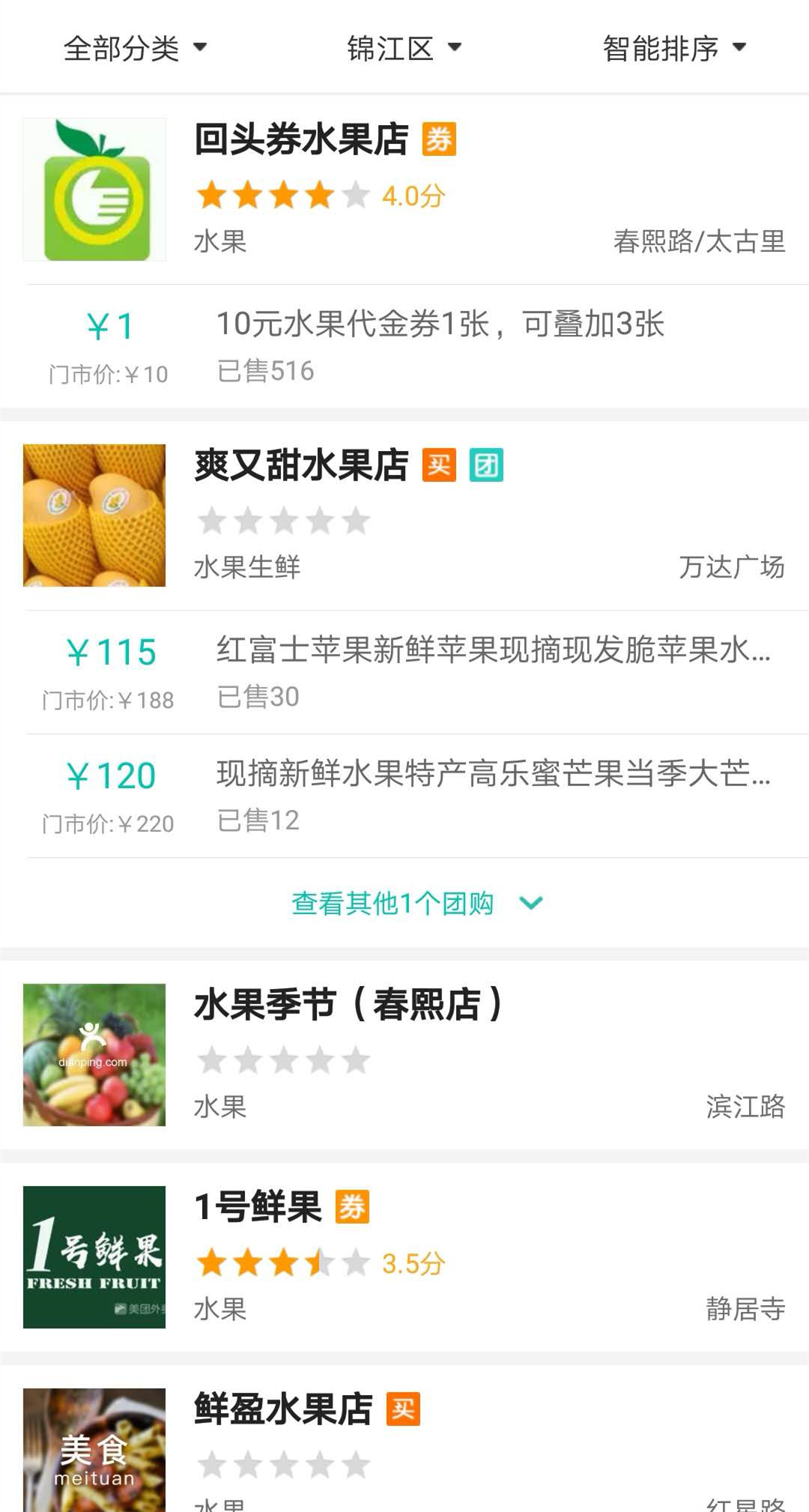 打開美團,查找附近的水果店,有的店會有優惠券或者團購,這樣更劃算哦~