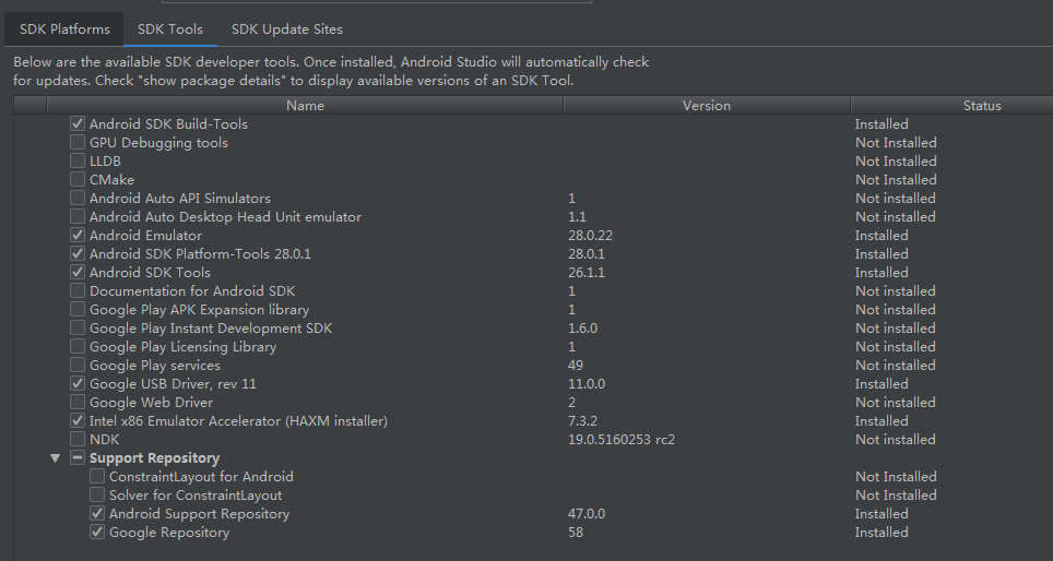 image.png配置好 sdk Manager, 不要問問什么要自己下載 android-sdk, 實在是被科學翻墻搞得有點傷, sdk-manager 各種代理搞不定
