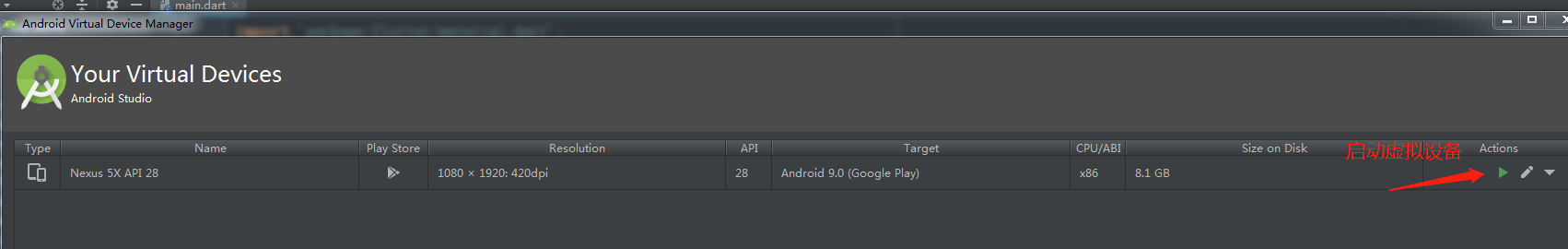 建立成功后, 點擊播放按鈕, 啟動設備查看