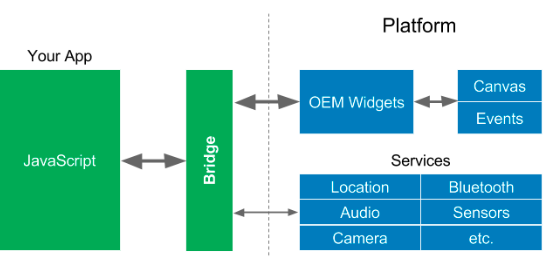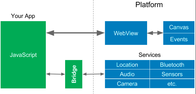 NativeApp階段.png這個階段是最初戰場,基本上iOS、Android、網頁需要3端共同開發,維護自己的原生部分。很自然的暴露出來的問題就是效率問題,雖然保證了各端的穩定性,但是時間成本又是一個問題。