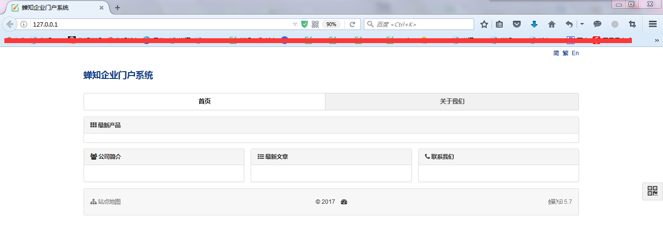 蟬知啟動成功后,點擊 訪問蟬知 按鈕訪問蟬知系統前臺,也可以在瀏覽器里面輸入 http://127.0.0.1 (apache端口為非80端口時,需要填寫端口號)訪問。