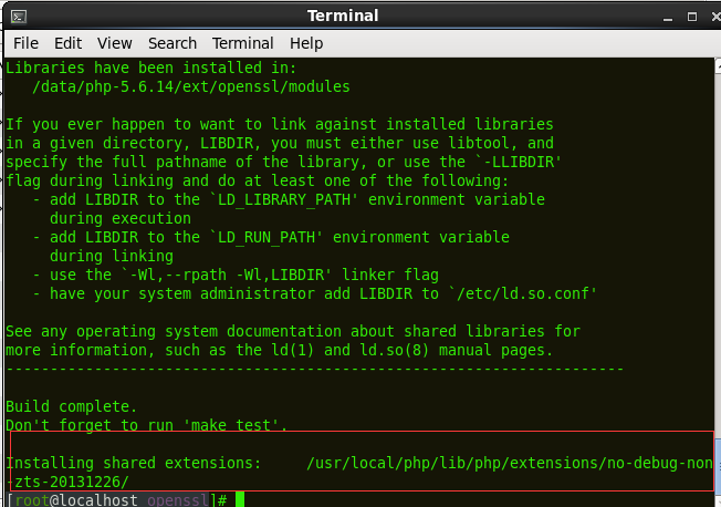 這時候openssl.so就已經在/usr/local/php/lib/php/extensions/no-debug-non-zts-20131226/目錄下生成了