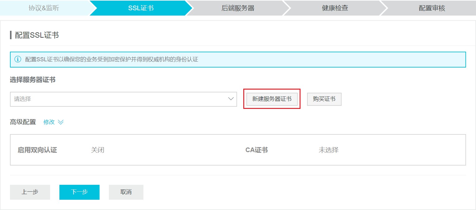 域名有了,證書也有了,現在需要通過配置把證書和域名匹配上,讓域名支持HTTPS協議。一種方式是到域名對應IP的服務器上去配置SSL證書,這就需要到每一臺服務器上去配置,太過麻煩。阿里云提供了負載均衡服務,只需要把證書配置到負載均衡上,則掛載在該負載均衡實例下的各服務器可以不用配置自動匹配,省去了不少麻煩。