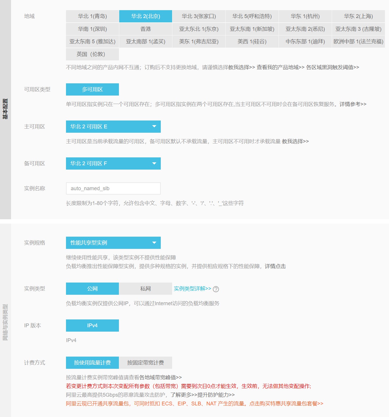 阿里云管理控制臺 > 負載均衡 > 創建負載均衡,選擇好實例規格,其它選項使用默認: